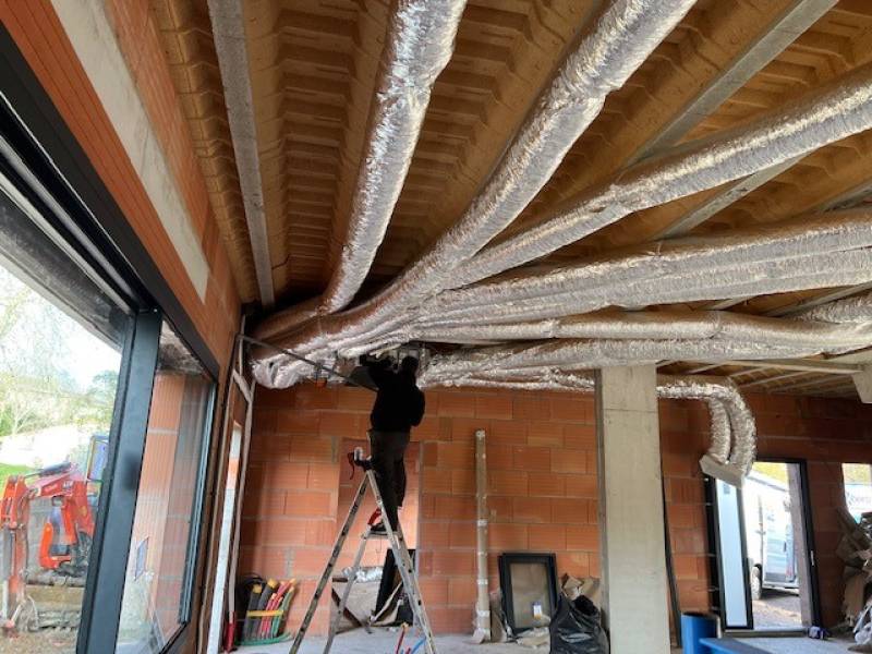 Pose d'une climatisation gainable dans une maison neuve de Saint-Denis-de-Pile